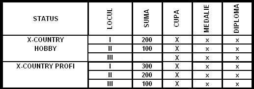 | Profesionisti | 14-99 ani (sunt considerati profesionisti sportivii ce au cel putin 2 concursuri la care au mai participat, sportivii care au ocupat cel putin un loc pe podium la un alt concurs sau sportivii ce detin brevet national sau international de rider, 6 ture a cate aproximativ 5 km |